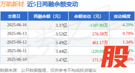 本站消息闪牛,6月16日,万凯新材(301216)融资买入838.81万元,融资偿还2344.33万元,融资净卖出1505.52万元,融资余额3.37亿元。
